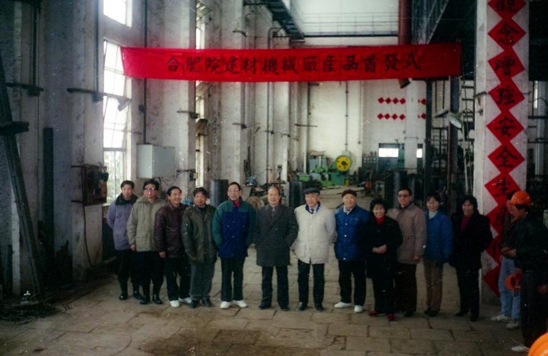 1994年7月,合肥院《科技實業(yè)發(fā)展規(guī)劃》出臺,明確了以科技成果為基礎(chǔ),以工程設(shè)計為依托,以支柱產(chǎn)業(yè)為骨干,帶動全院其他科技產(chǎn)業(yè)產(chǎn)品的生產(chǎn)。開展工程承包、設(shè)備成套和建材產(chǎn)品貿(mào)易,形成內(nèi)地與沿海配套的經(jīng)營貿(mào)易網(wǎng)絡(luò),組建科技實業(yè)集團(tuán),使其逐步成為院經(jīng)濟(jì)支柱的指導(dǎo)思想和奮斗目標(biāo)。圖為九十年代合肥院建材機(jī)械廠產(chǎn)品首發(fā)式